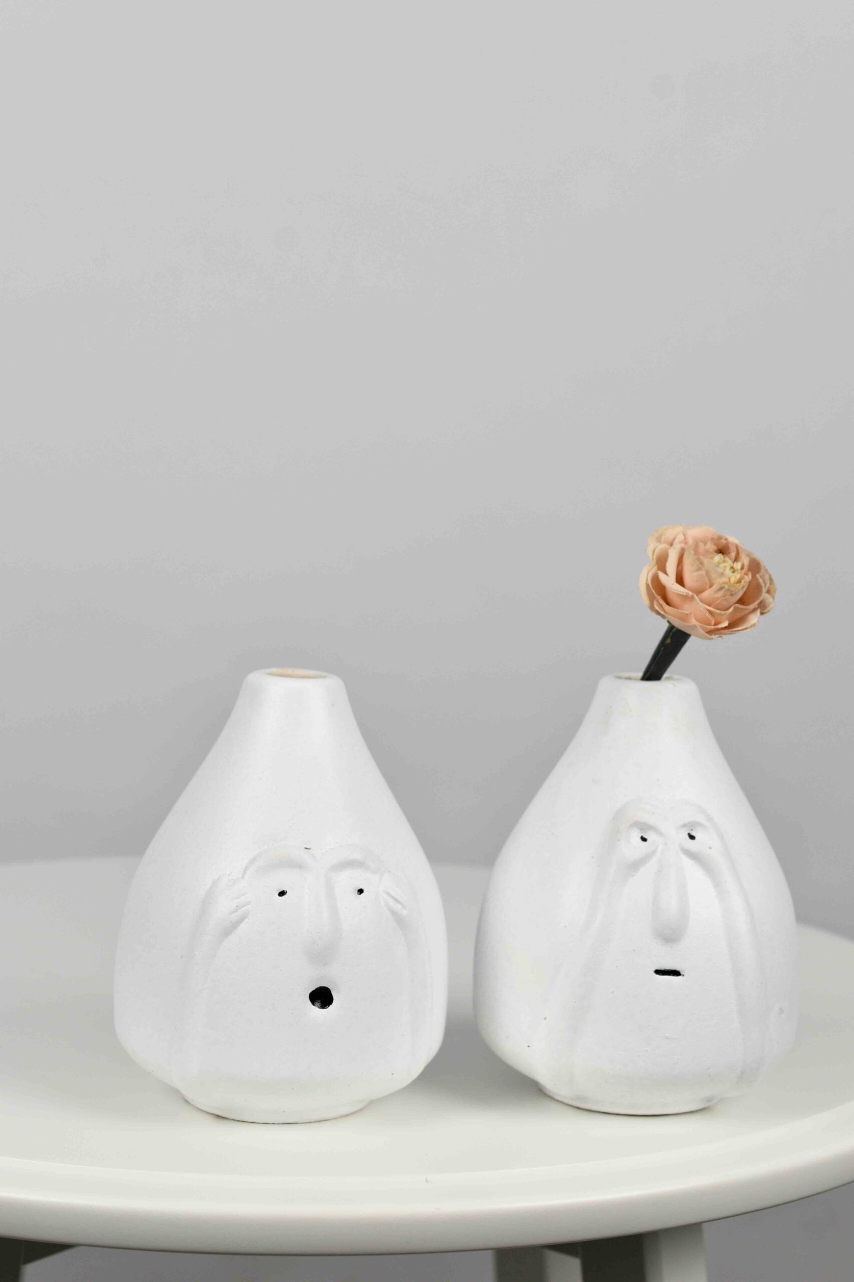 NIH CERAMIC HOME DECOR FACE LOOK COUPLE VASES. SET OF 2