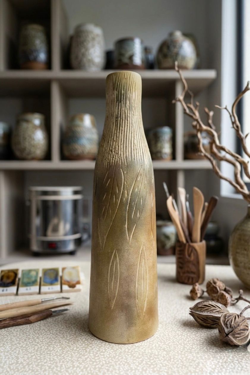 “Elevate your space with the clean lines of our hand-sculpted cylinder vase. Standing at a striking height, this piece features a slim profile and a refined satin finish. Its minimalist aesthetic draws the eye upward, making it an ideal centerpiece for entryways or narrow mantels. Each vase is unique, bearing the quiet marks of its handmade origin.”